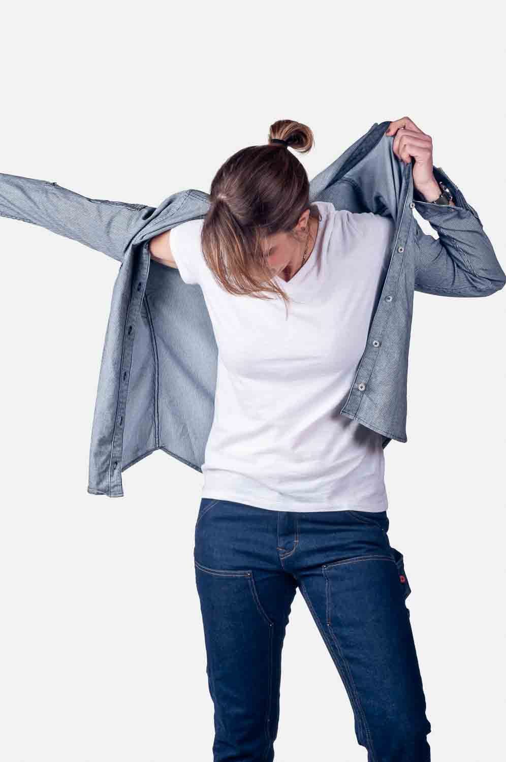 This shirt gets shit done. Lightweight but with enough heft to handle heavy tasks. Stripes give a nod to heritage workwear fabrics, recalling the days when great-great-great-grandma helped build the railways. Subtle tailoring makes it modern. Functional button-secured breast pocket does more than say, “Hi, I’m randomly sitting on your boob.” Handle this shirt with care? Hell no. Your battle scars only make it better.