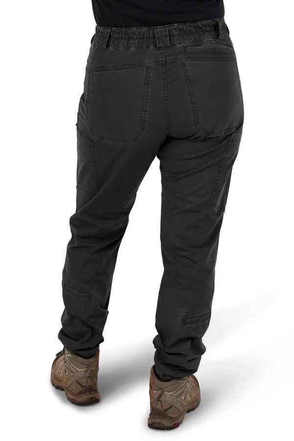 With 14 strategically placed pockets, these women’s stretch cargo pants offer exceptional storage without sacrificing style. Zipped bellowed thigh pockets, deep inset back pockets, and innovative back calf pockets keep essentials secure and accessible. Reinforced front pocket tabs are ideal for tools like tape measures, while the right-side clip tab is perfect for carabiners or keychains. Crafted to move with you, these women’s black stretch cargo pants include Dovetail’s signature crotch gusset for unrestricted mobility. Whether you’re tackling tough jobs, heading outdoors, or styling them for the street, these cargo pants for women deliver on all fronts.