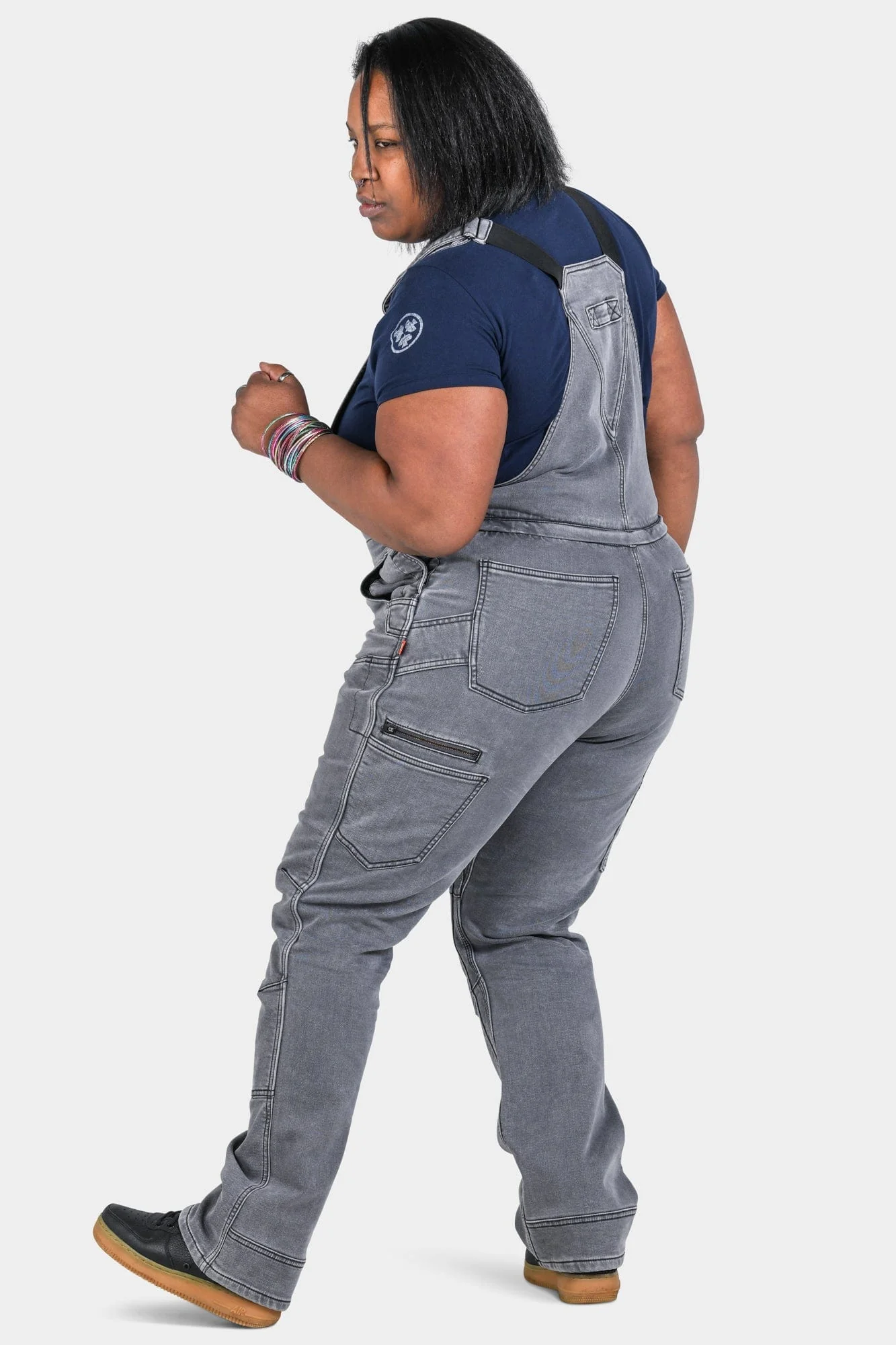 Freshley Drop Seat Overalls in Grey Stretch Thermal Denim